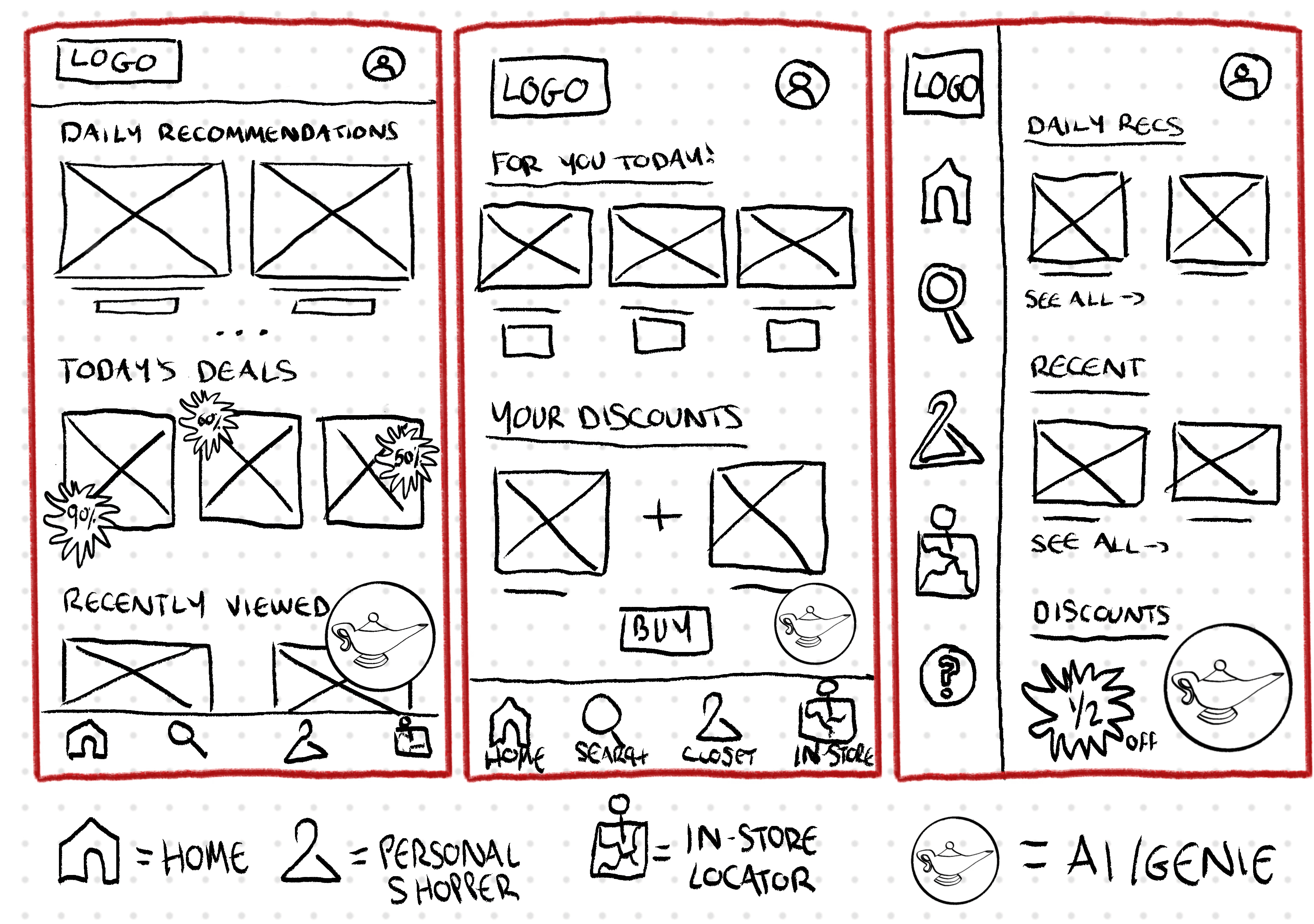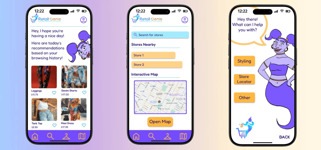 AI integration and user personalisation are vital elements of Retail Genie and the problem we aimed to solve, so we wanted this to be front and center in our designs.