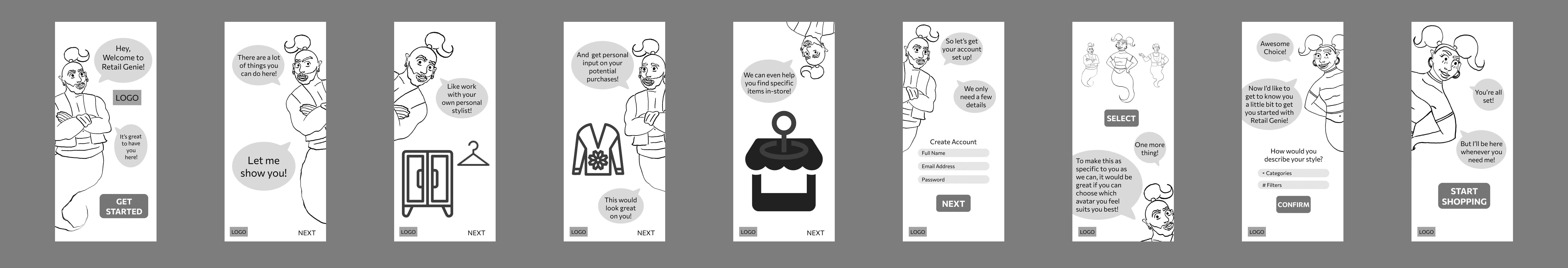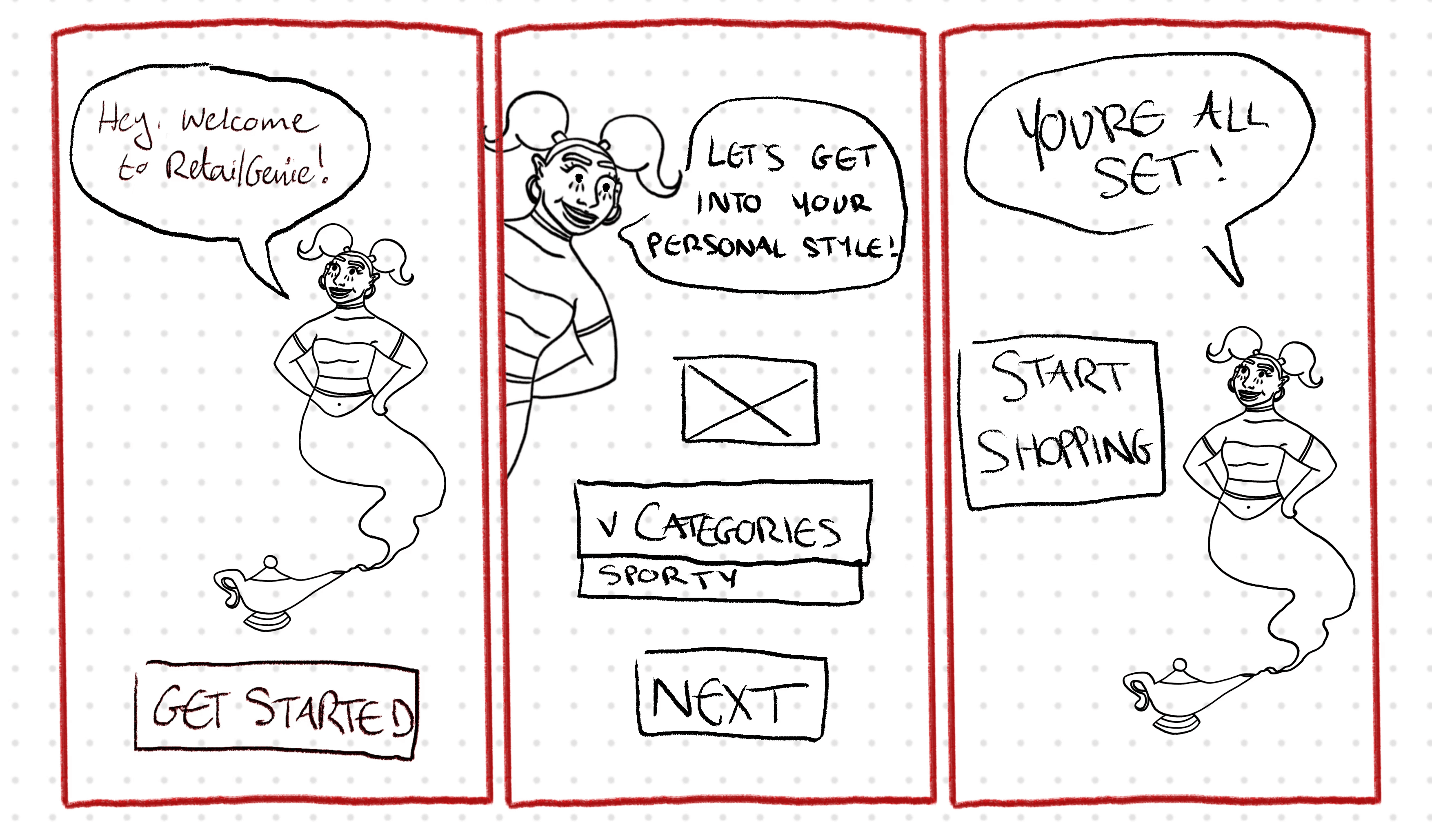 Alongside leading the UX/UI team for this project, I was also in charge of putting together illustrated assets to be used within the app. Due to the name of the product; Retail Genie, we wanted to lean into the concept, and personalise our built-in AI as a customisable Genie.